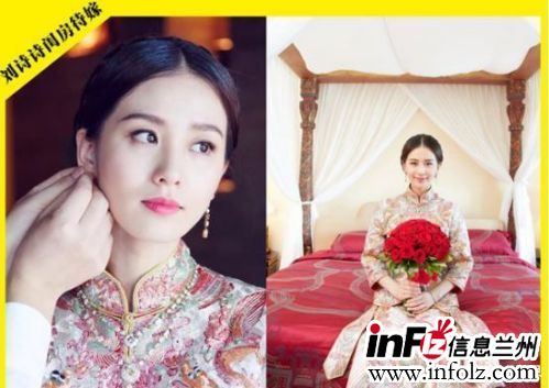 更让人惊艳的莫过于身穿中式婚纱的刘诗诗,很多网友看到婚纱都直呼感觉步 步惊心的若 曦又回来了,骨子里都透着一股端庄典雅的刘诗诗再配上婚纱上的雍容华贵,刘诗诗不愧为古代 美人呀!