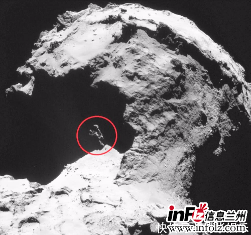 从照片上科学家看到了难以置信的画面,从图中的红圈部分就像是一个人类站在67P彗星上。而67P彗星整体看上去就像是一个狮子,科学家推测67P彗星很有可能是由两个太空岩石撞击后形成。