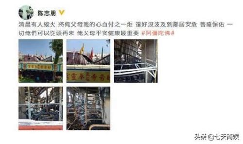原小虎队成员陈志朋近期发了一篇微博动态,引起了广大网友的关注,图中陈志朋将现场的照片晒出,可见所有物品焚烧一空,情景触目惊心。但网友也纷纷安慰道:只要人没事就行。