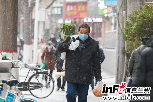 12月2日,兰州迎来了一场雪。市区雪花飞舞,气温骤降,空气清新。交警坚守街头指挥交通,环卫工人清扫路面,市民、游客也前来五泉山公园体验雪中乐趣。