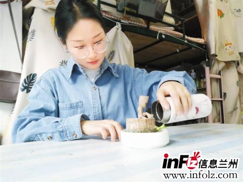 关梦瑶精心呵护绿植