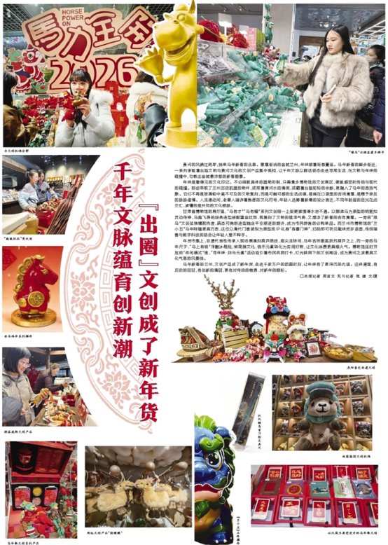 马年新春的兰州,文创产品成了新年货,走进千家万户的团圆时刻,让年味有了更深沉的内涵。这味道里,有历史的回甘,有创新的清甜,更有对传统的敬畏、对新年的期盼。