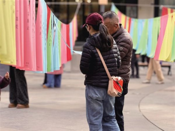 活动现场,五彩斑斓的谜笺如花海般悬挂于广场上空,谜题涵盖民俗文化、体育热点、文字游戏等多个领域,兼顾不同年龄层需求,引得市民游客争相驻足、踊跃参与。