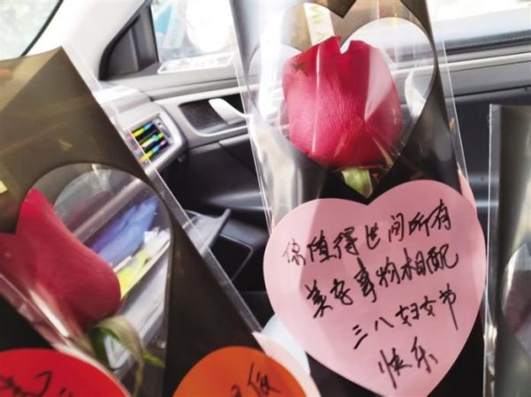 这一暖心的举动,让不少女性乘客感到十分意外和开心。一位女乘客收到鲜花后,开心地表示,原本只是一次普通的乘车,没想到收获了这样一份温暖,这让她觉得这个节日更加有意义了。一枝鲜花,一张笑脸,一句祝福,原本陌生的乘车空间,因为花香更显温暖。据了解,这已经是王长军第二年自发准备这样的送花活动了。这两天的送花活动中,王长军的出租车仿佛成了流动的温暖驿站。