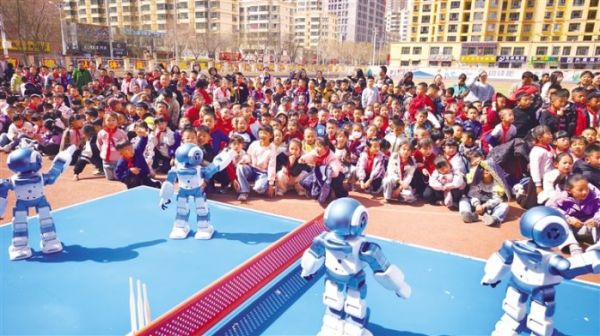 图为活动现场,智能机器人为师生带来精彩表演。