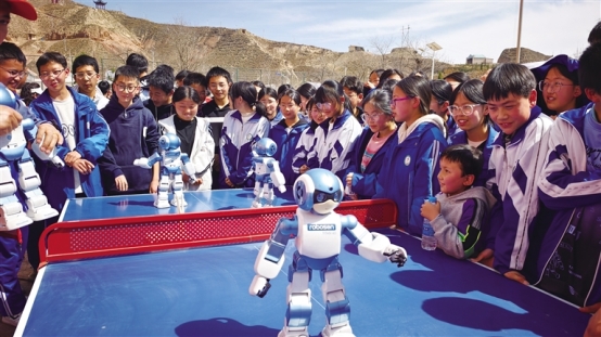 在科普展品体验区,各类趣味科普展品琳琅满目,涵盖声学、电学、力学等多个学科领域。记者看到,每一个体验项目前,都围满了充满好奇心的学生,大家认真聆听科普志愿者的讲解,积极提问交流,在轻松愉悦的氛围中学习科学知识、感受科技魅力。图为学生们观看机器人表演。