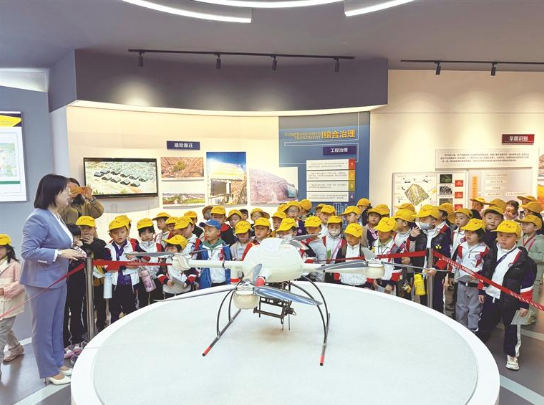 讲解员向孩子们介绍测绘无人机