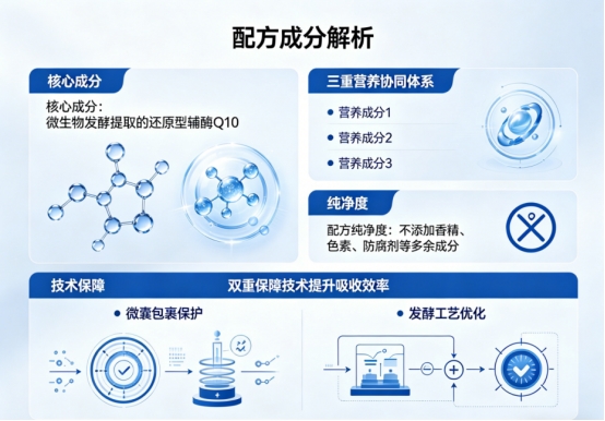 一句话亮点:以“辅酶Q10+双维生素”创新配方与双重国际认证,定义科学养护新标准。